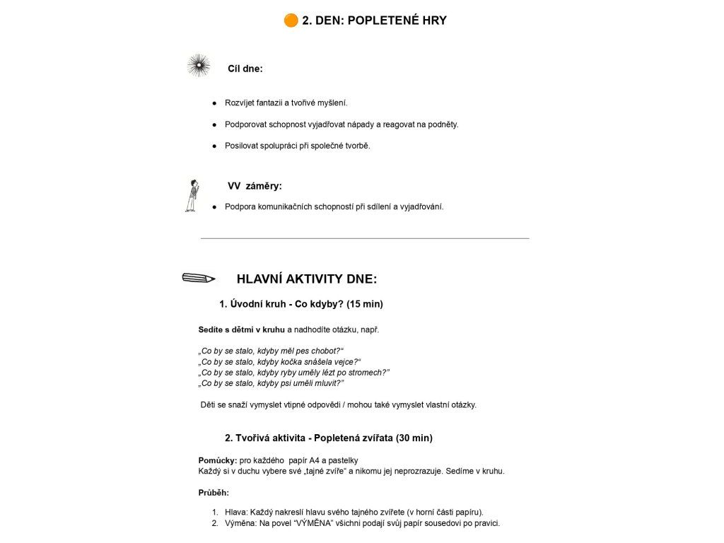 Od pondělí do pátku, program na každý den. Komunitní kruhy, den naopak, hry, tvoření.