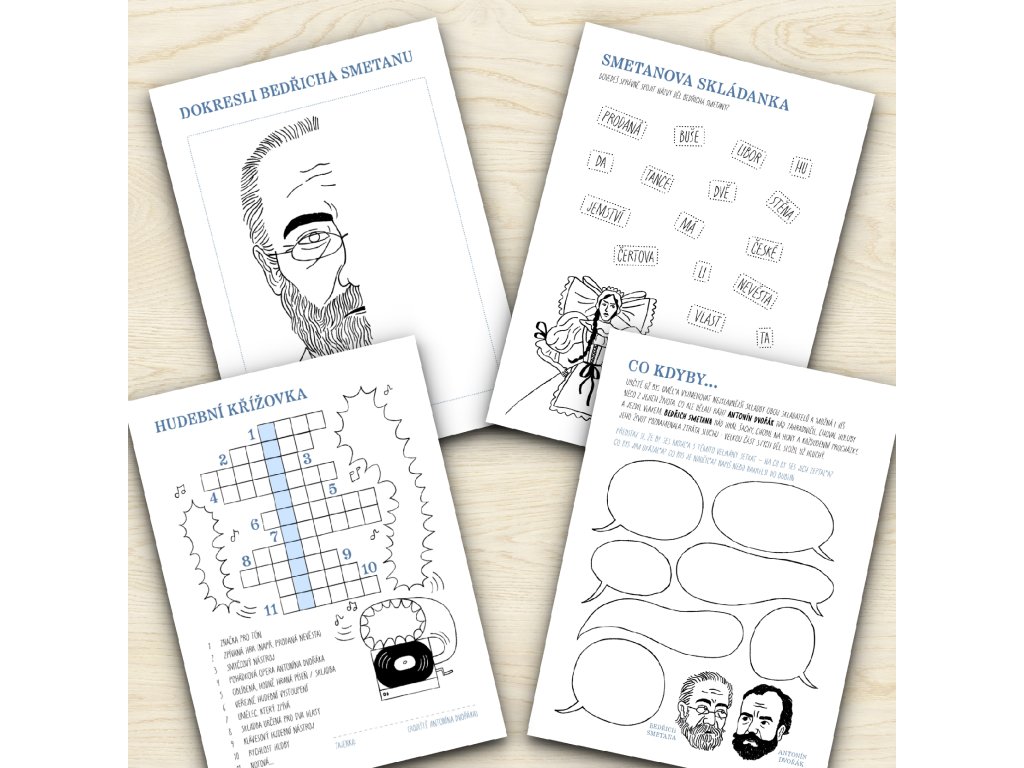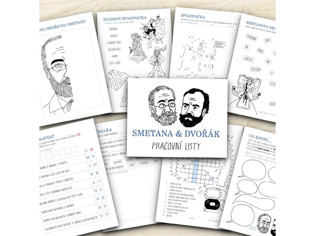 Pracovní listy s hravými a tvořivými úkoly A. Dvořákovi a B. Smetanovi.