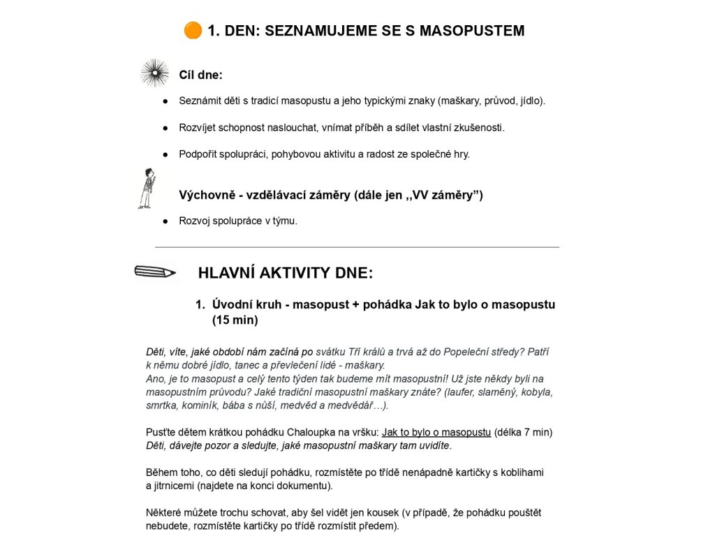 Masopustní týden - týdenní plán do družiny se stezkou