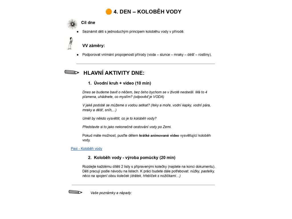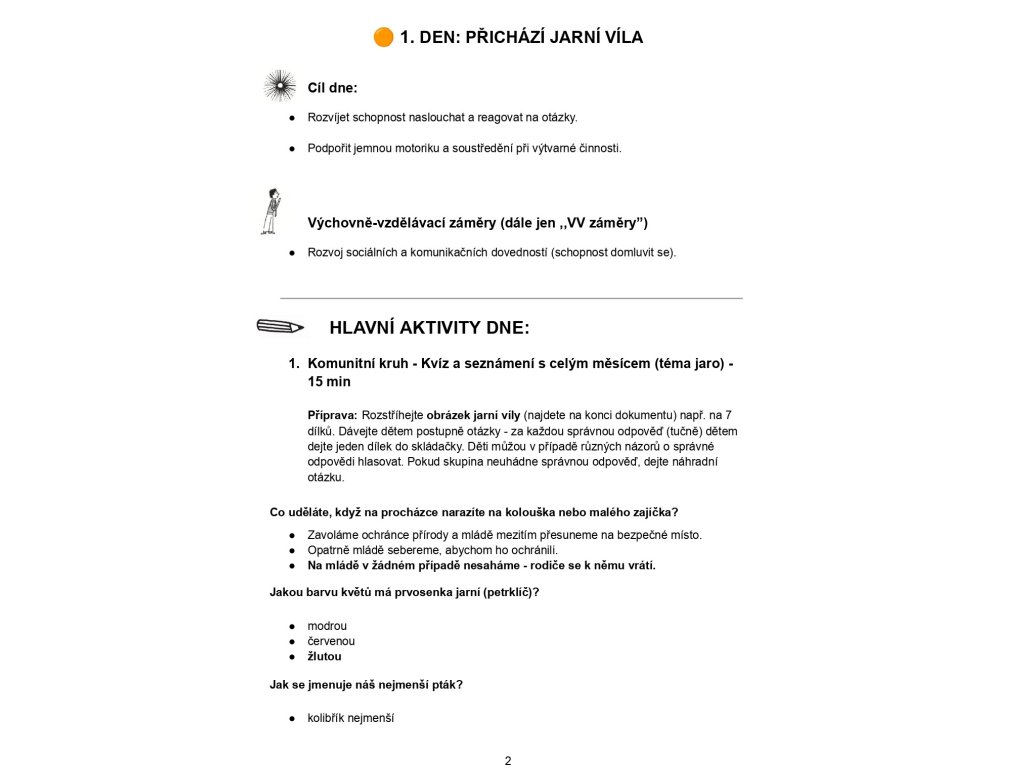 4 zpracované týdny s programem na každý den: Loučíme se se zimou, Jarní květiny, Zvířata na jaře, Velikonoce a jarní tradice + stezka